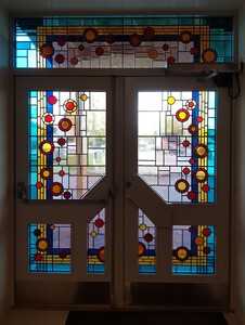 2016Dit is de achtse ingang op de Steinerskolen på Hedemarken in Noorwegen die nu een glas in lood raam heeft door mij gemaakt.